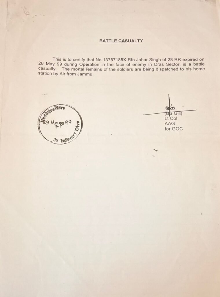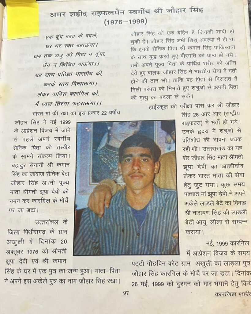 कारगिल शहीद राइफल मैन जोहर सिंह