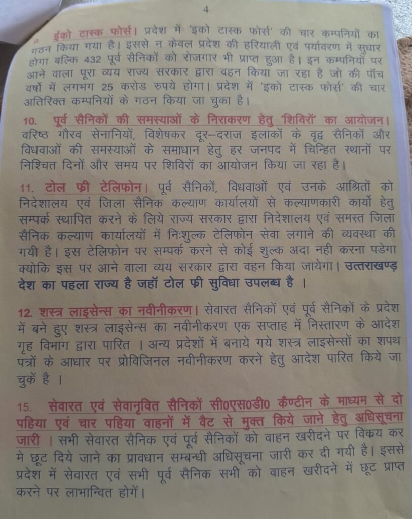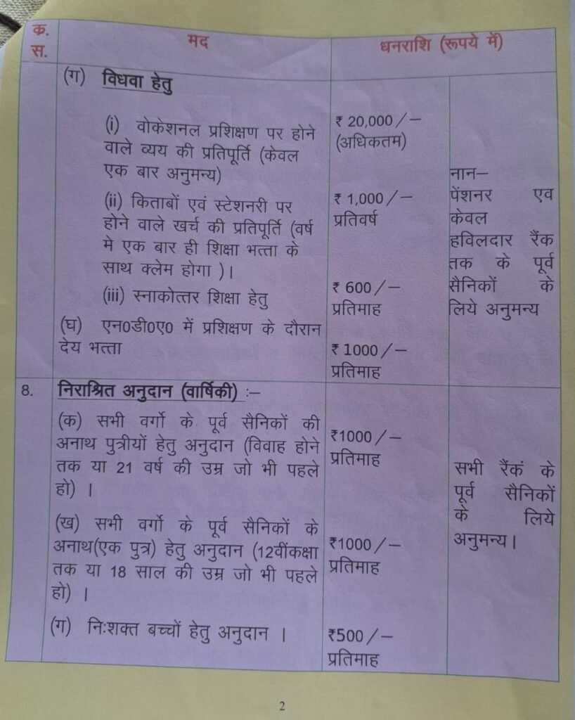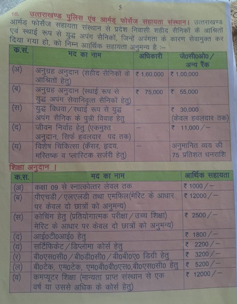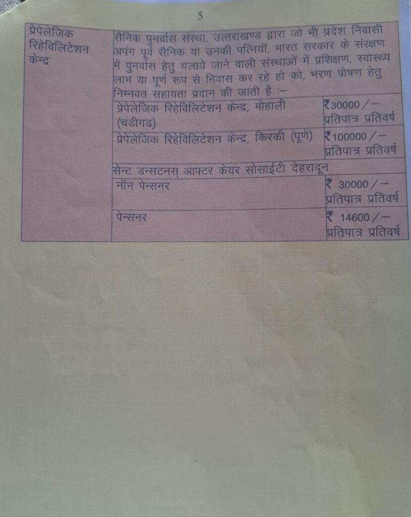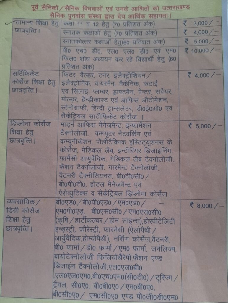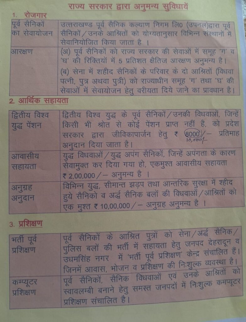 उत्तराखंड में पूर्व सैनिकों, सैनिक विधवाओं एवं आश्रितों को आर्थिक सहायता
