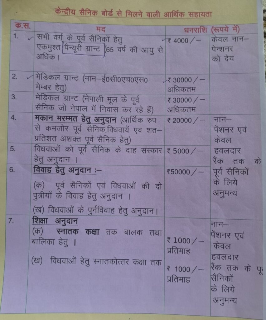 केंद्रीय सैनिक बोर्ड द्वारा पूर्व सैनिकों एवं सैनिक विधवाओं को आर्थिक सहायता